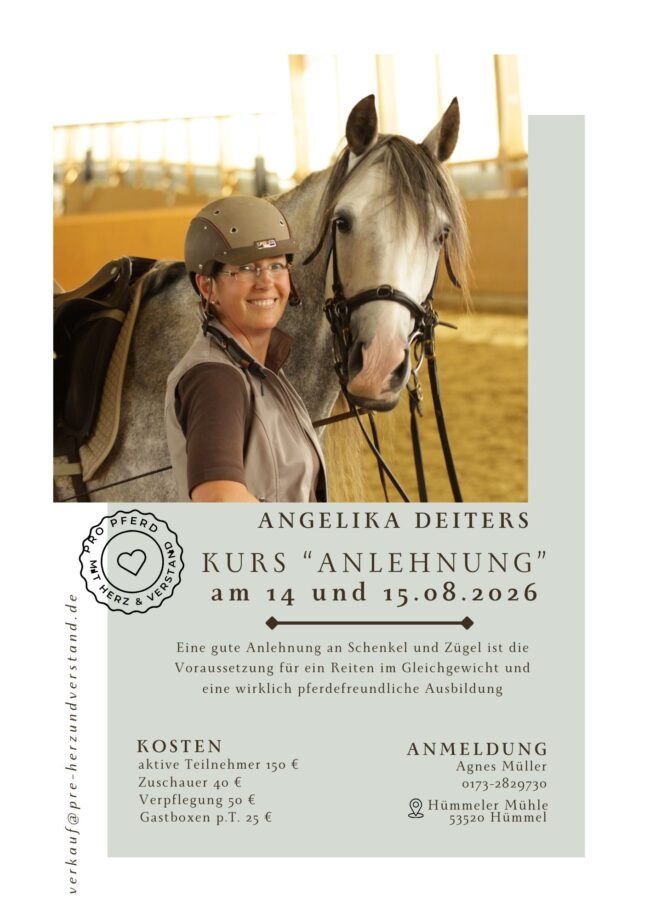 Noch Plätze frei !! Für den Kurs „Übergänge“ mit Lisa Gerlach am 11. und 12. September sind noch Plätze verfügbar. Der Kurs widmet sich gezielt der Arbeit an sauberen, durchlässigen Übergängen – einer wichtigen Grundlage für Balance, Aufmerksamkeit und feine Hilfengebung. Übergänge zwischen und innerhalb der Gangarten helfen dabei, das Pferd aufmerksamer, tragfähiger und besser…