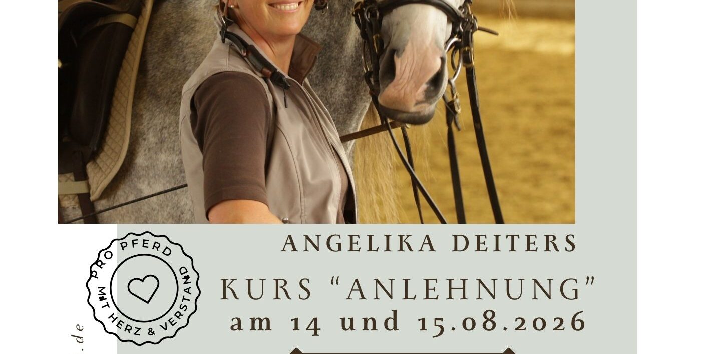 Am 14. und 15. August 2026 findet auf der Hümmeler Mühle ein Reitkurs mit Angelika Deiters statt. Im Mittelpunkt steht das Thema „Anlehnung“ – eine wichtige Grundlage für harmonisches und pferdefreundliches Reiten.