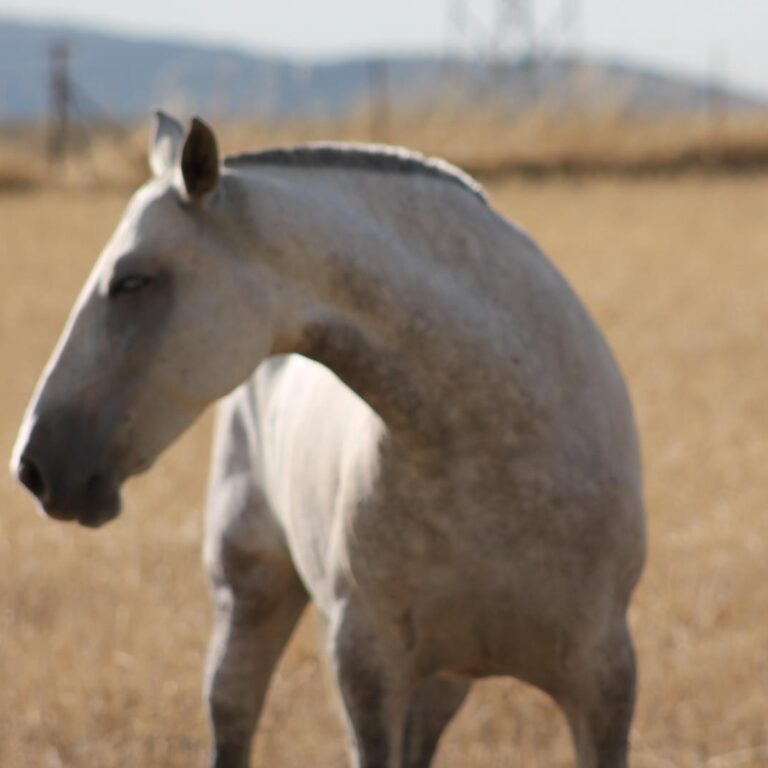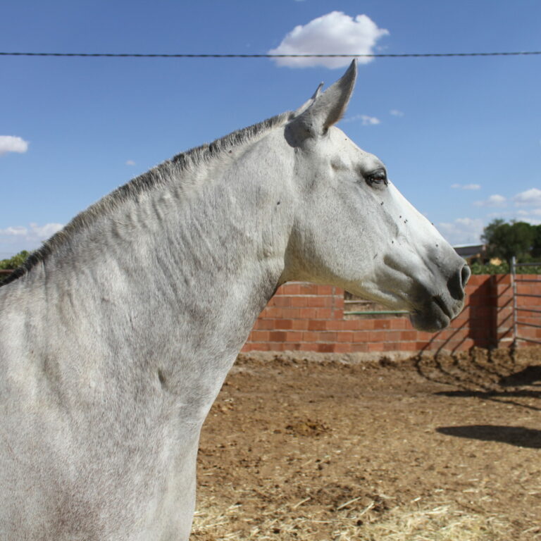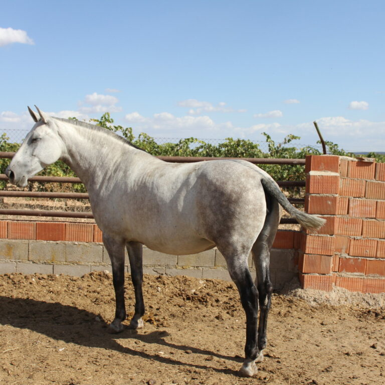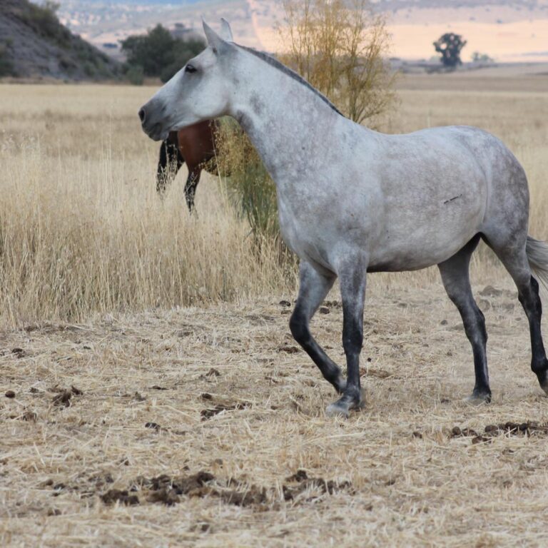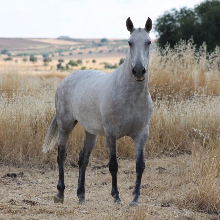 Bonita ist eine unserer ersten Zuchtstuten und stammt aus einer beeindruckenden Linie, die sich bis auf die edlen Cartujano-Pferde zurückverfolgen lässt. Im Frühjahr 2023 kam sie gemeinsam mit ihrem ersten Fohlen zu uns auf das Gestüt.