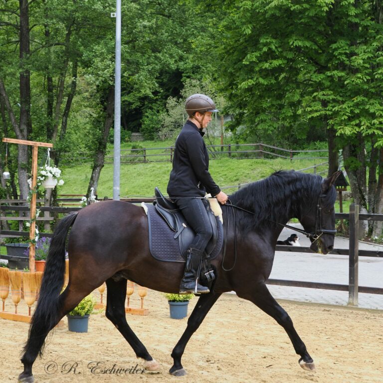 In laufe der Jahre besuchte ich immer wieder Lehrgänge und Seminare z.B. von Richard Hinrichs, oder regelmäßige intensiv Trainings bei Angelika Deiters um an meine Faszination der hohen Lektionen wie der Piaffe und Passage, die ich mit großer Motivation anstrebe zu arbeiten. In meinem bisherigen Leben habe ich alle meine eigenen Pferde roh gekauft und selbst ausgebildet. Piropo Cas ist mein aktuelles PRE Nachwuchspferd und wir schauen wo die „Reise“ hingeht.