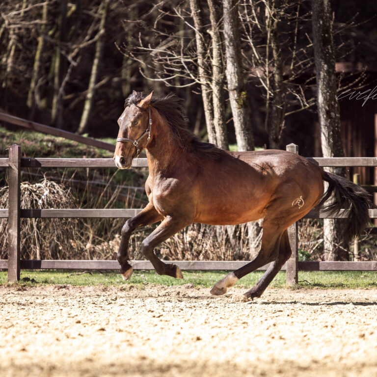 ULISES Cas ist mit seinen zwei Jahren bereits ein äußerst typvoller und ausdrucksstarker Junghengst. Seine markanten Abzeichen, die großen, ausdrucksstarken Augen und das edle Profil mit leichter Ramsnase verleihen ihm eine außergewöhnliche Erscheinung. Er bewegt sich kraftvoll und wendig. Ulises ist Barhufer und wird alle fünf Wochen fachgerecht bearbeitet.
